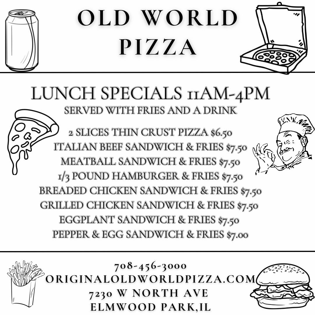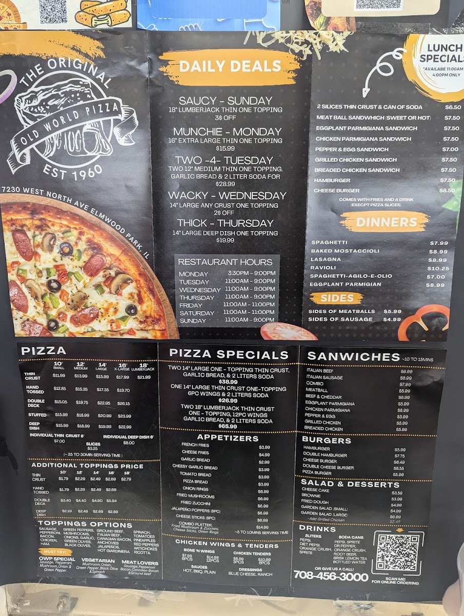 Welcome to The Original Old World Pizza, a gem nestled in Elmwood Park, IL, where tradition meets deliciousness. This restaurant proudly serves an array of mouthwatering pizzas, ranging from crispy thin-crust to hearty deep-dish, ensuring a delightful experience for every palate.